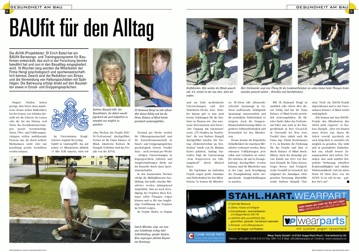 - "BAUfit für den Alltag" Österreichische Bauwirtschaft Nr. 9/2004 vom Sept. 2004, Link (gif) (Quelle: www.oebw.co.at)